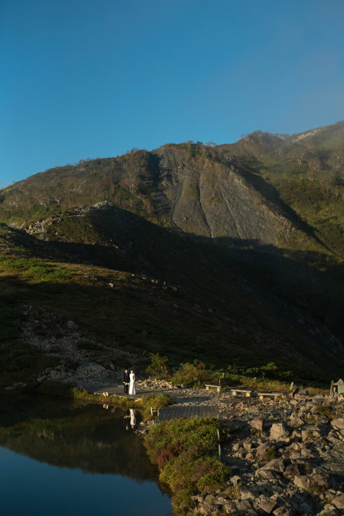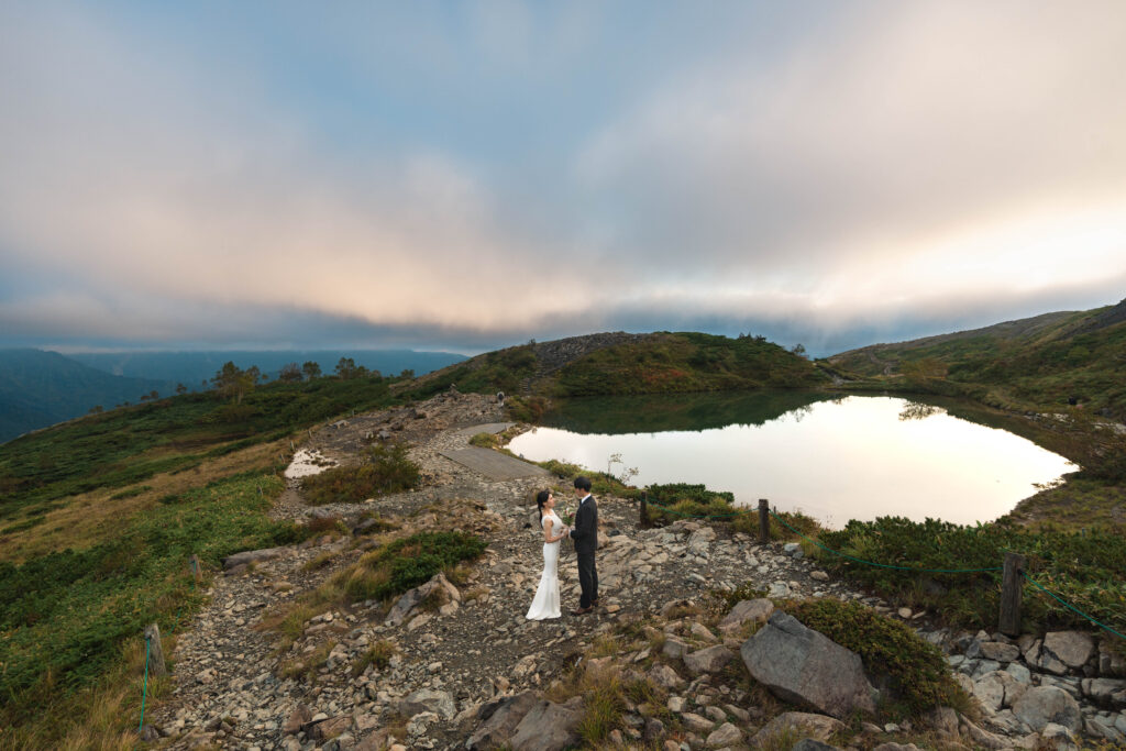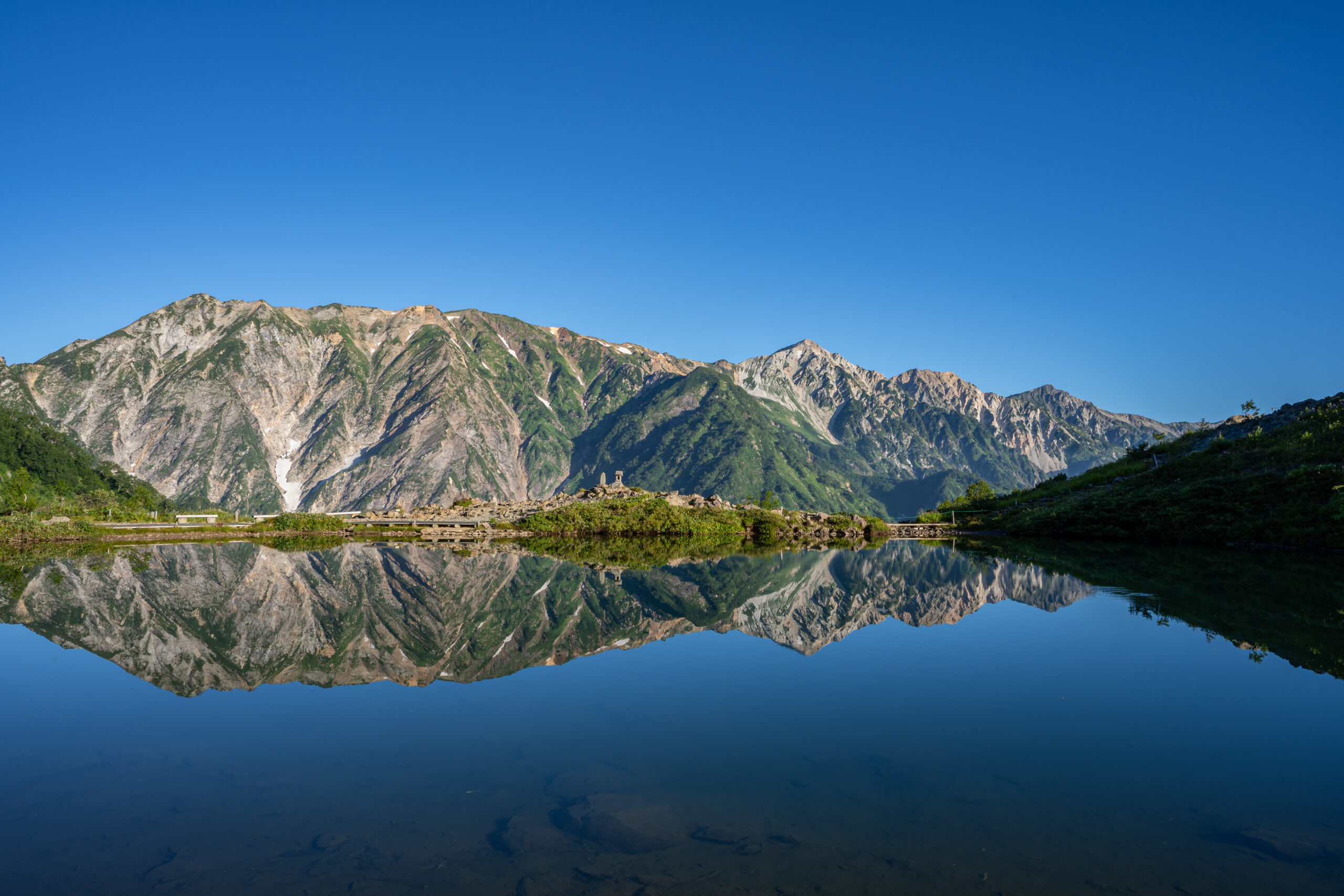 標高2,060mに位置し、晴れた日には水面に映り込む北アルプスの景色を楽しめます。