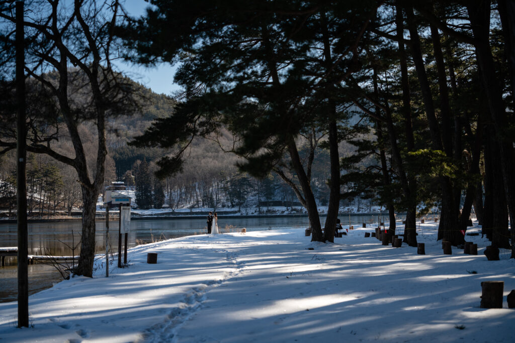 凍えるような空気と、白く雪化粧をまとった湖畔は、
